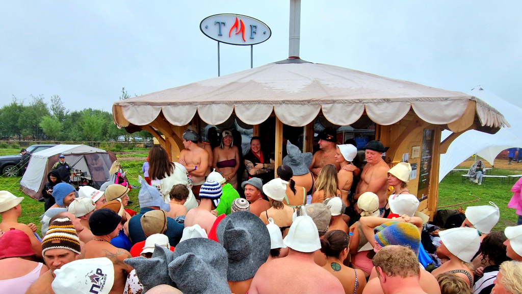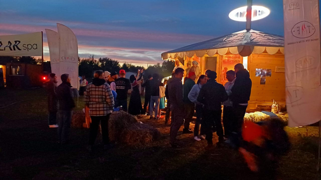 Наша баня стала настоящим центром притяжения: аромат кедрового сруба от наших партнеров Сорокин & Угренинов  привлекал любителей попариться несмотря на дождь и холод. Особое внимание привлекла особенная банная печь TMF Джоконда, которая была представлена впервые.